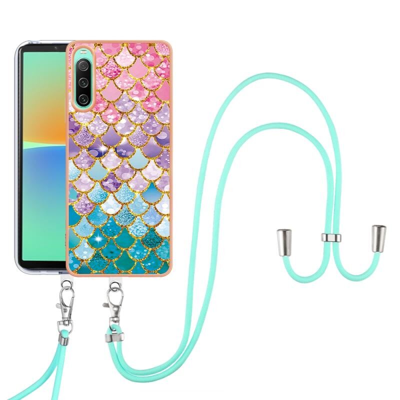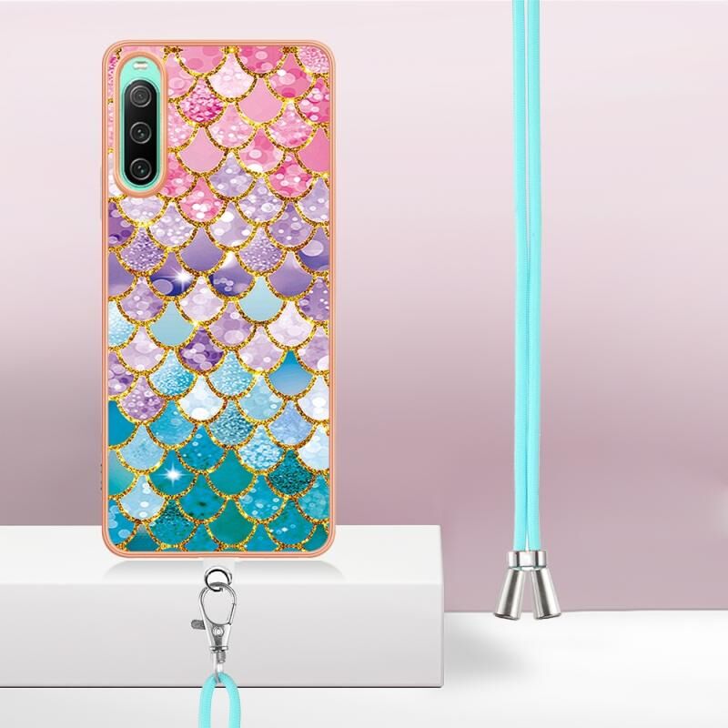 Θήκη τηλεφώνου για Sony Xperia 10 IV με ηλεκτρολυτική επιμετάλλωση IMD TPU με κορδόνι (Πολύχρωμες Λέπια)