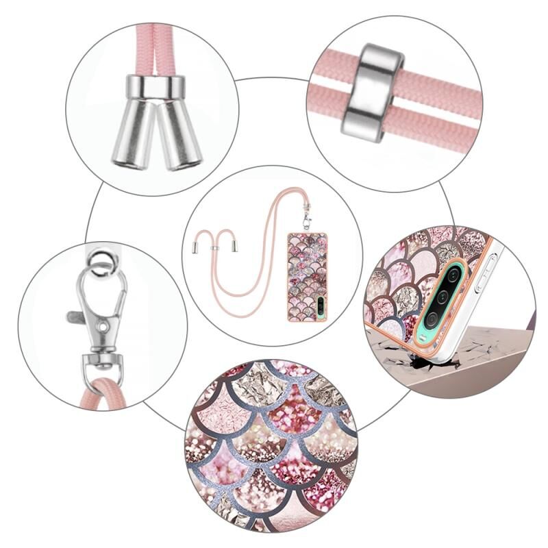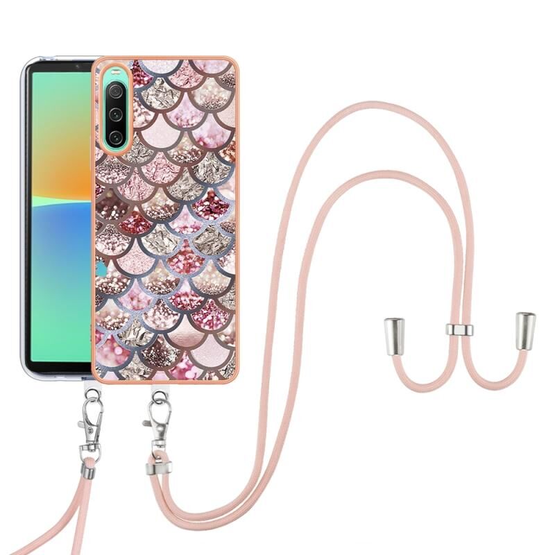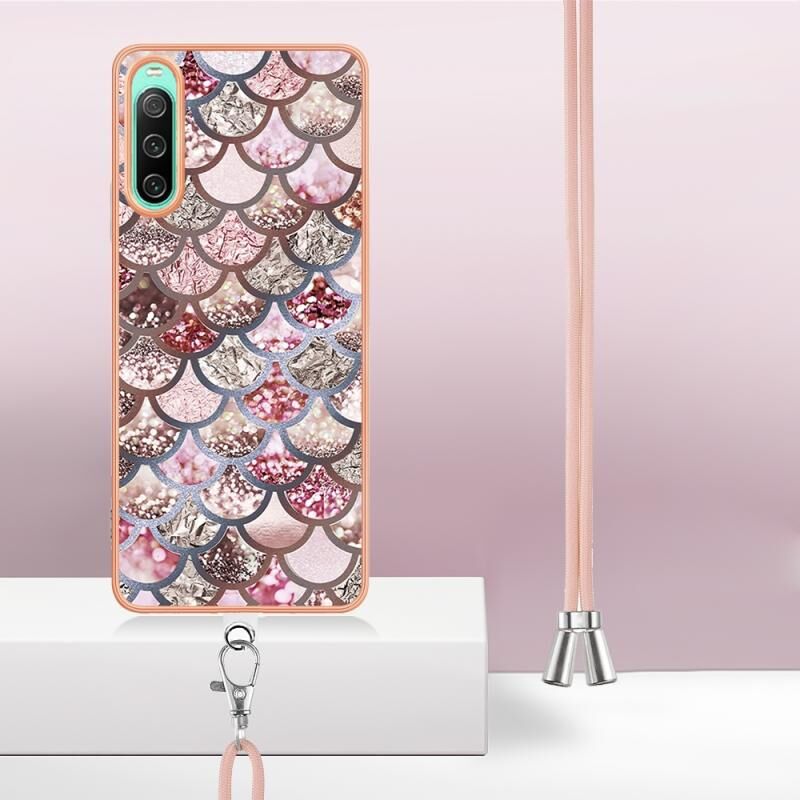 Θήκη τηλεφώνου για Sony Xperia 10 IV με ηλεκτρολυτική επιμετάλλωση IMD TPU με κορδόνι (Ροζ Λέπια)