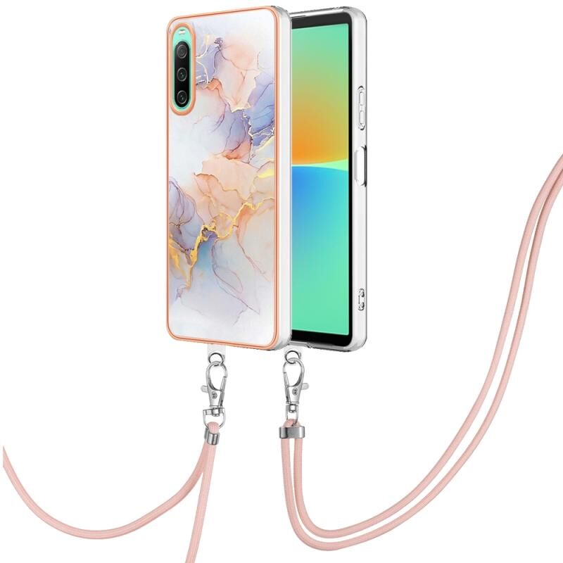 Θήκη τηλεφώνου για Sony Xperia 10 IV με ηλεκτρολυτική επιμετάλλωση IMD TPU με κορδόνι (Ροζ Λέπια)
