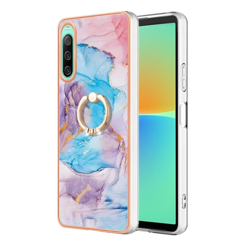 For Sony Xperia 10 IV Electroplating IMD TPU Phone Case with Ring(Blue Marble)