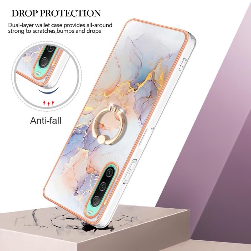 For Sony Xperia 10 IV Electroplating IMD TPU Phone Case with Ring(White Marble)