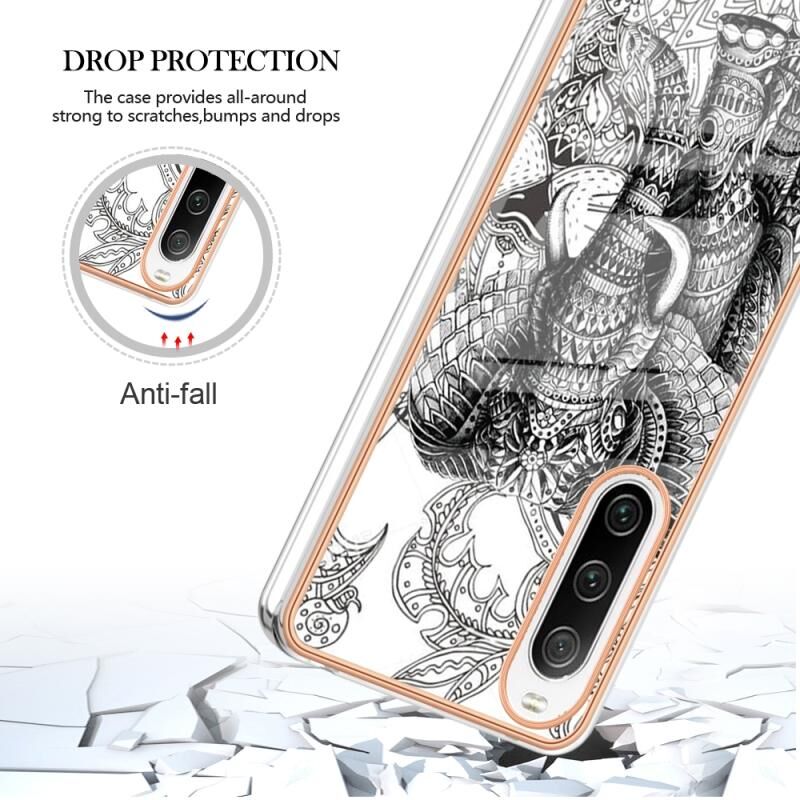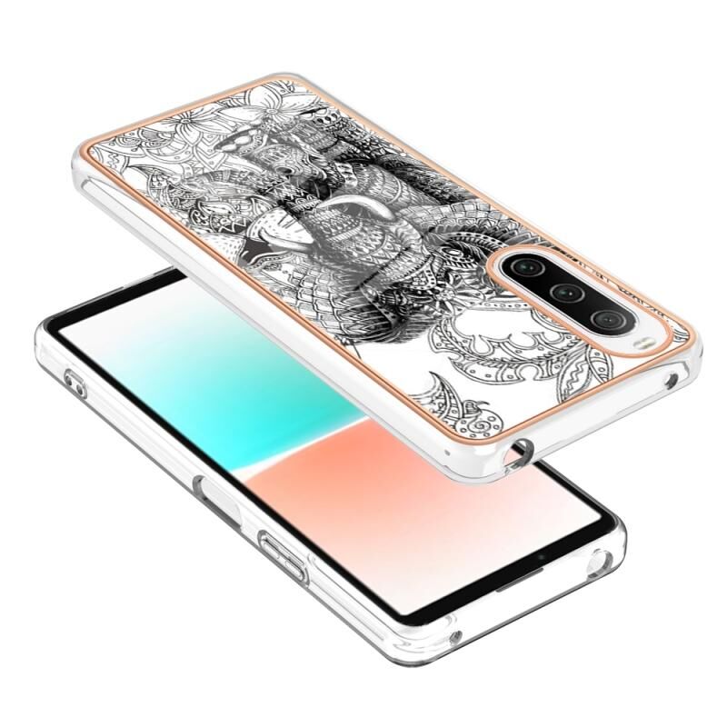 Θήκη τηλεφώνου για Sony Xperia 10 IV με ηλεκτρολυτική μαρμάρινη επικάλυψη, διπλής όψης IMD (Totem Elephant)