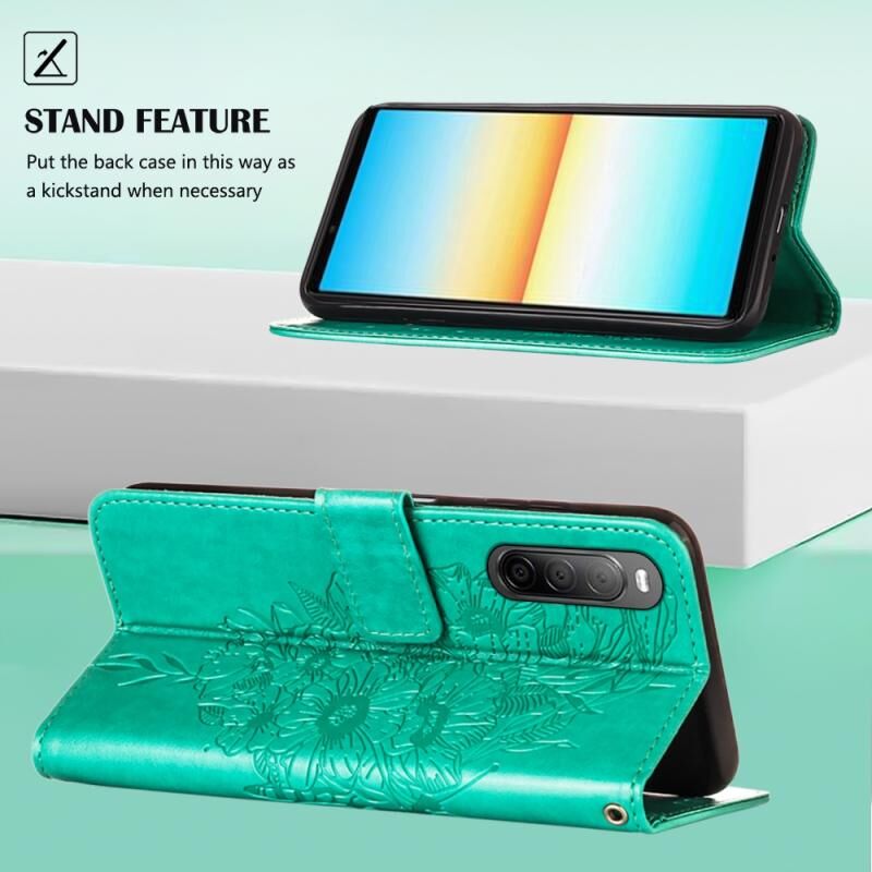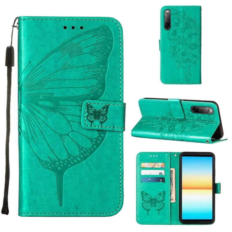 Για Sony Xperia 10 IV ανάγλυφη θήκη τηλεφώνου με δέρμα πεταλούδας (πράσινο)