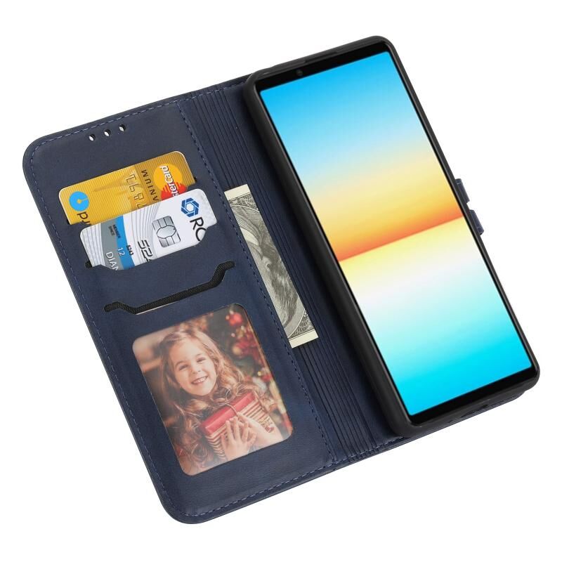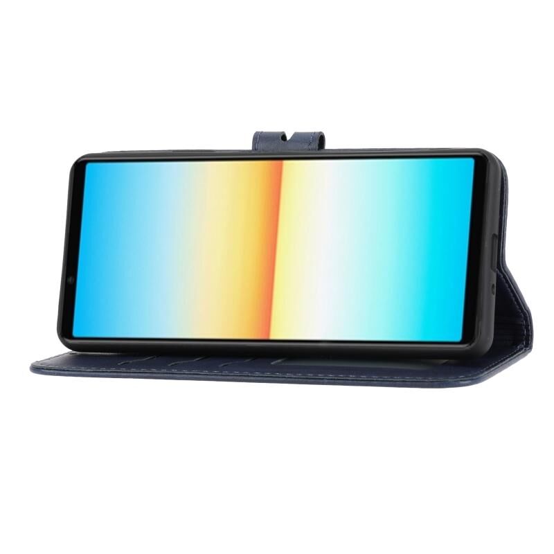 Θήκη τηλεφώνου από δέρμα με ανάγλυφο σχέδιο χαρούμενης γάτας για Sony Xperia 10 IV (Γκρι)