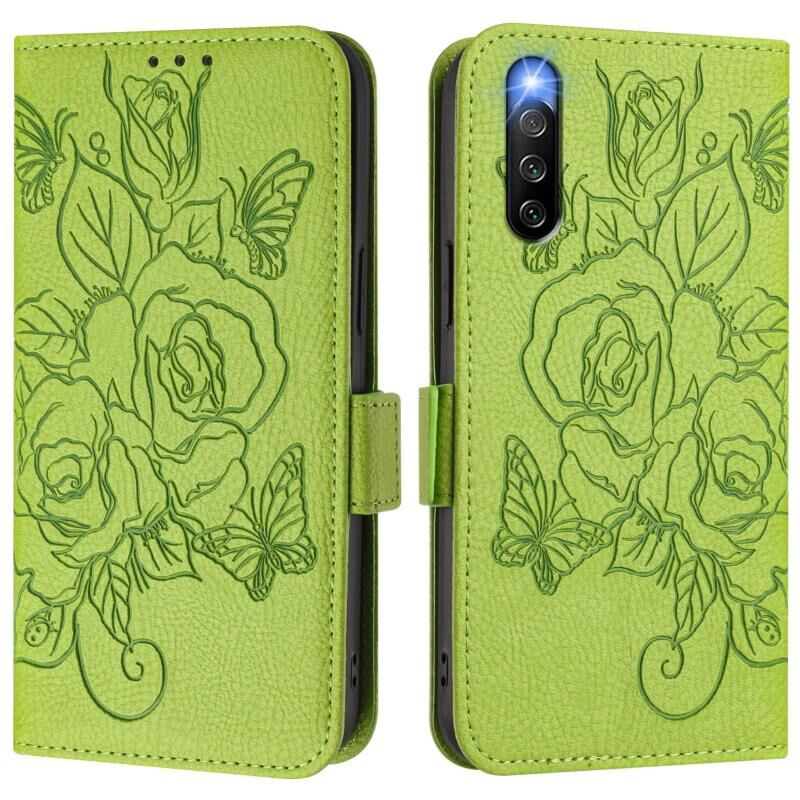 Για Sony Xperia 10 IV ανάγλυφο Rose RFID Anti-theft δερμάτινη θήκη τηλεφώνου (Πράσινο)