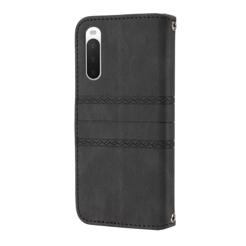 Για Sony Xperia 10 IV ανάγλυφη ριγέ μαγνητική πόρπη οριζόντια Flip τηλέφωνο δερμάτινη θήκη (μαύρο)
