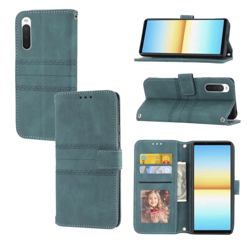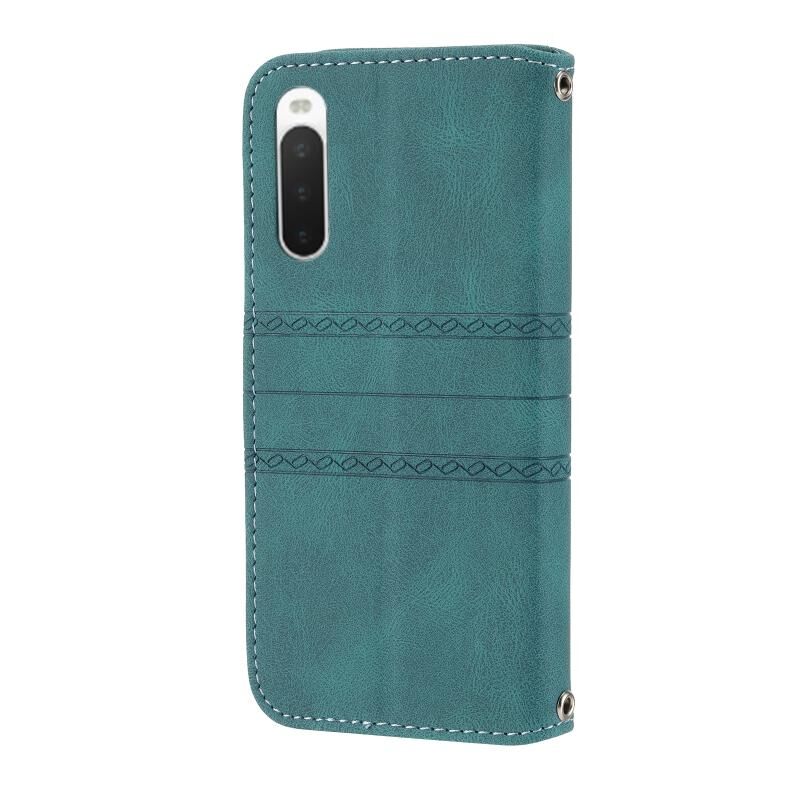 Για Sony Xperia 10 IV ανάγλυφο ριγέ μαγνητική πόρπη οριζόντια Flip τηλέφωνο δερμάτινη θήκη (πράσινο)