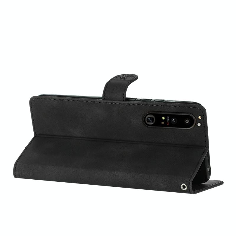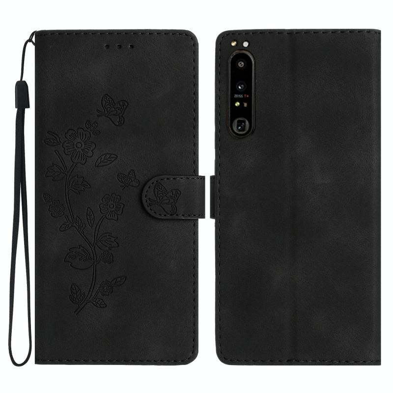 Θήκη τηλεφώνου δερμάτινη με ανάγλυφο σχέδιο λουλουδιών και πεταλούδων για Sony Xperia 10 IV (Μαύρο)