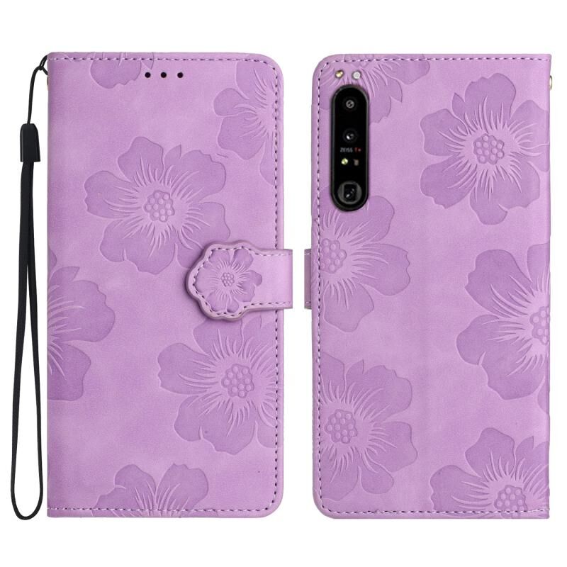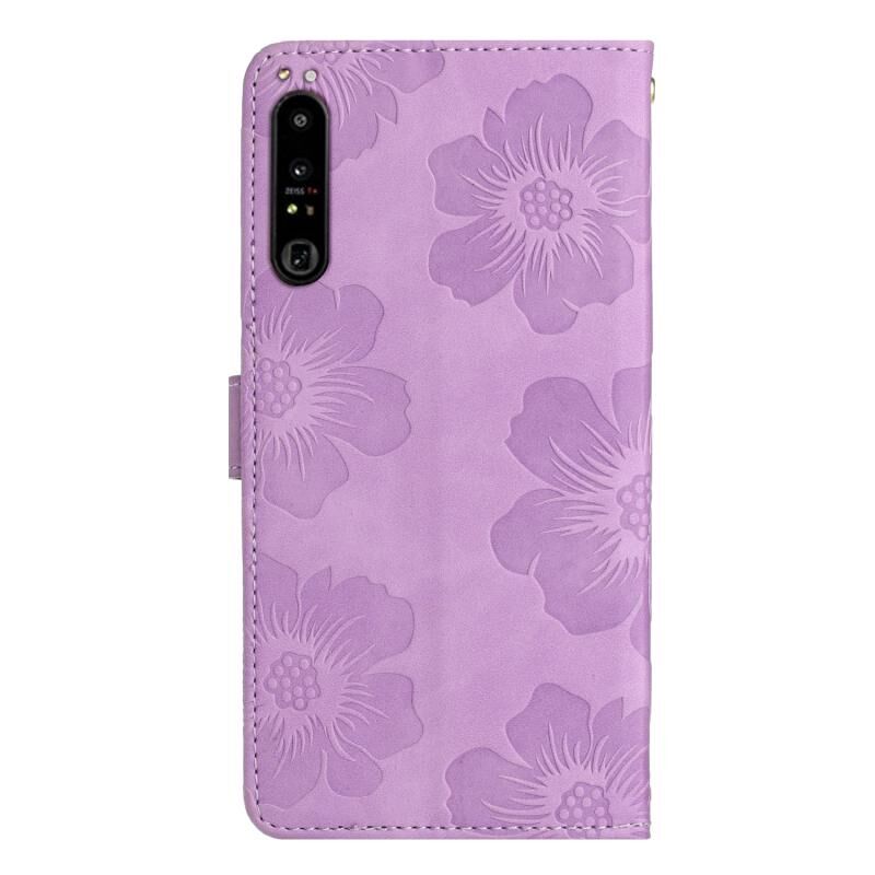 Για Sony Xperia 10 IV λουλούδι ανάγλυφο μοτίβο δερμάτινη θήκη τηλεφώνου (μωβ)