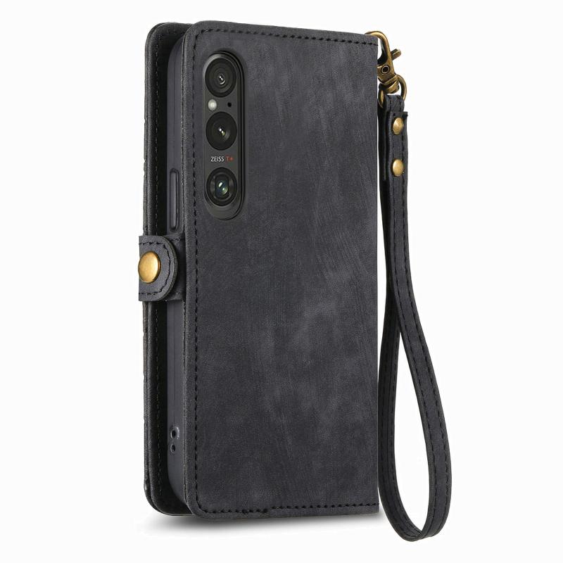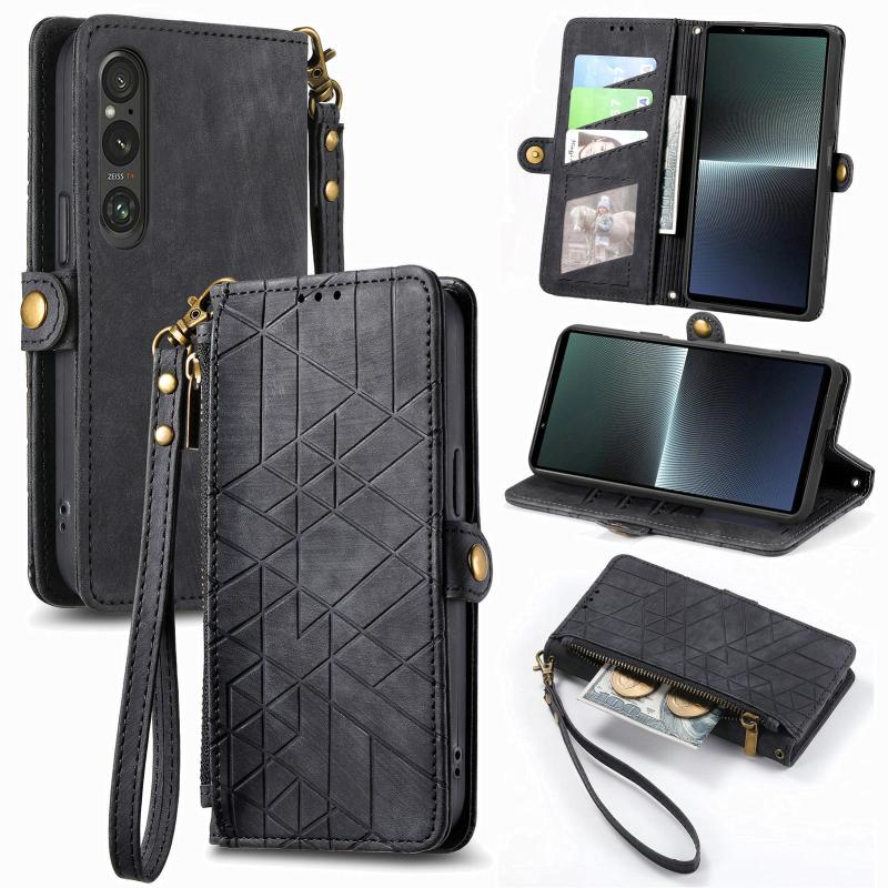 For Sony Xperia 10 IV Geometric Zipper Wallet Side Buckle Leather Phone Case(Black)