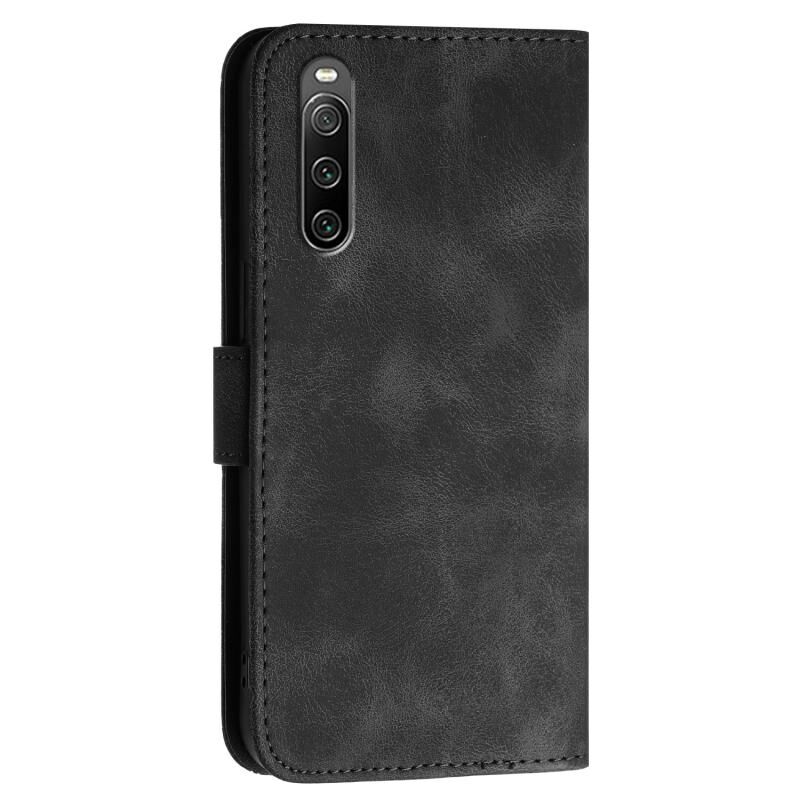 Θήκη τηλεφώνου από δέρμα με σχέδιο ανάγλυφου πλέγματος πεταλούδας για Sony Xperia 10 IV με κορδόνι (Σκούρο Μπλε)
