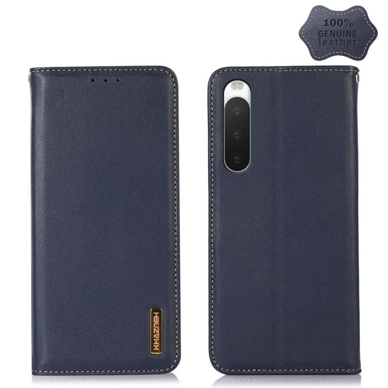 Θήκη τηλεφώνου από γνήσιο δέρμα Nappa αγελάδας KHAZNEH για Sony Xperia 10 IV (Μπλε)