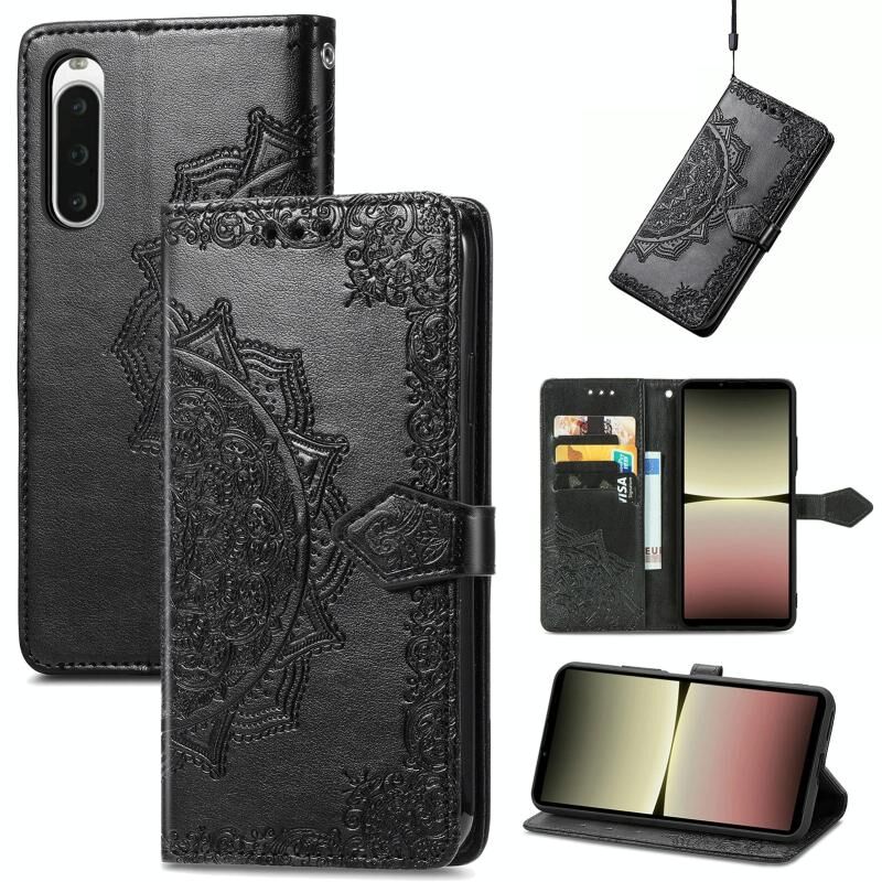 Για το Sony Xperia 10 IV Mandala λουλούδι ανάγλυφο δερμάτινη θήκη τηλεφώνου (Μαύρο)