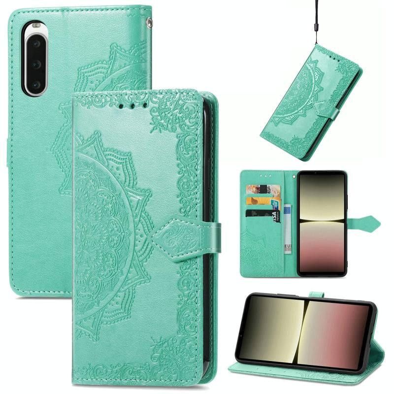 Για το Sony Xperia 10 IV Mandala λουλούδι ανάγλυφο δερμάτινη θήκη τηλεφώνου (πράσινο)