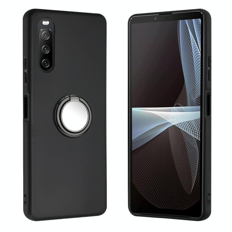 Για Sony Xperia 10 IV Ματ δαχτυλίδι κάτοχος TPU τηλέφωνο υπόθεση (Μαύρο)