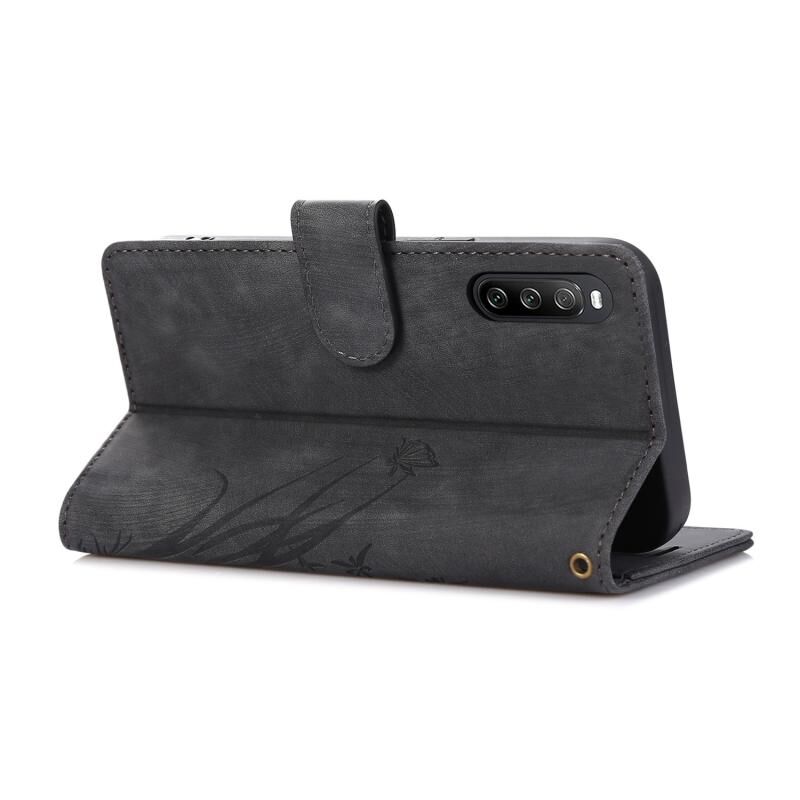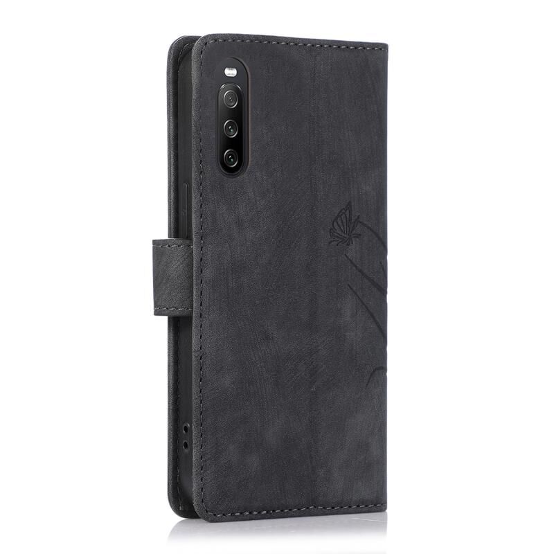Θήκη τηλεφώνου από δέρμα με ανάγλυφο σχέδιο πεταλούδας ορχιδέας για Sony Xperia 10 IV (Μαύρο)