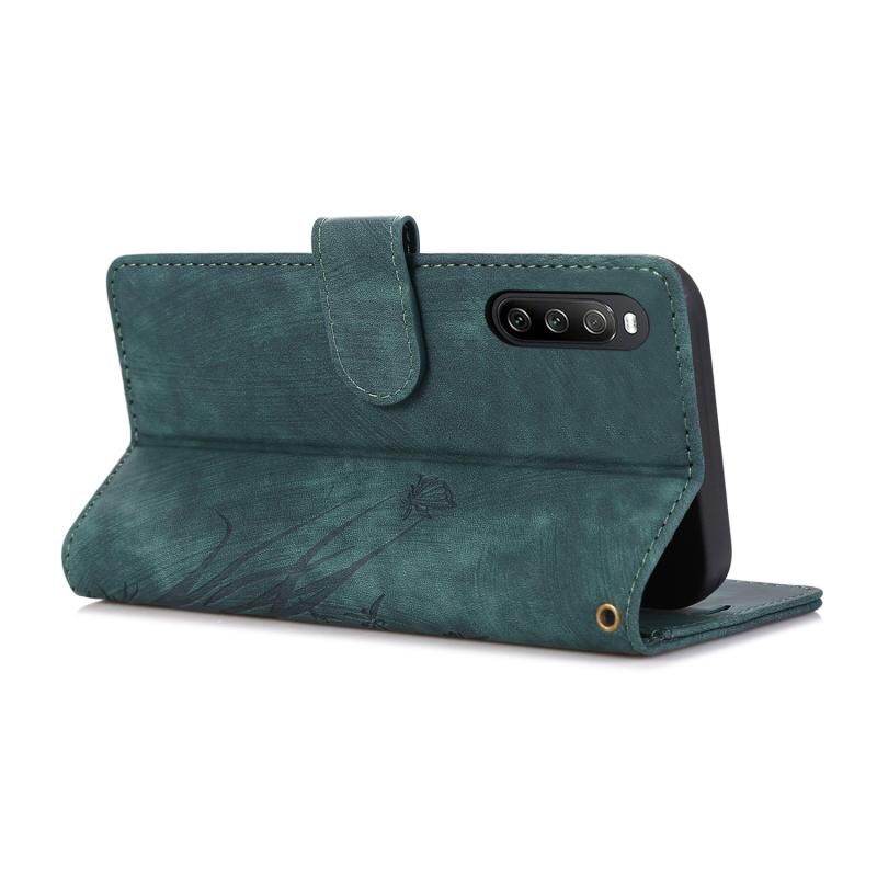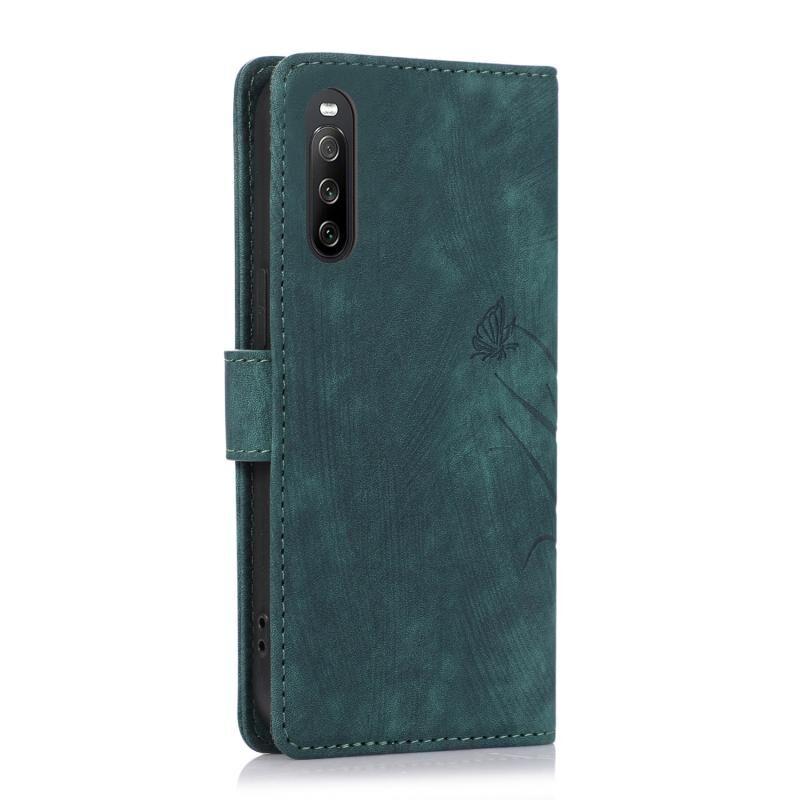 Θήκη τηλεφώνου από δέρμα με ανάγλυφο σχέδιο πεταλούδας ορχιδέας για Sony Xperia 10 IV (Μαύρο)
