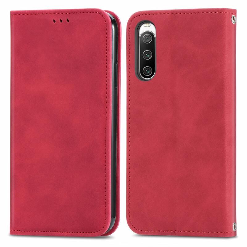 Για Sony Xperia 10 IV Retro δέρμα αίσθηση μαγνητική Flip δέρμα τηλέφωνο υπόθεση (κόκκινο)