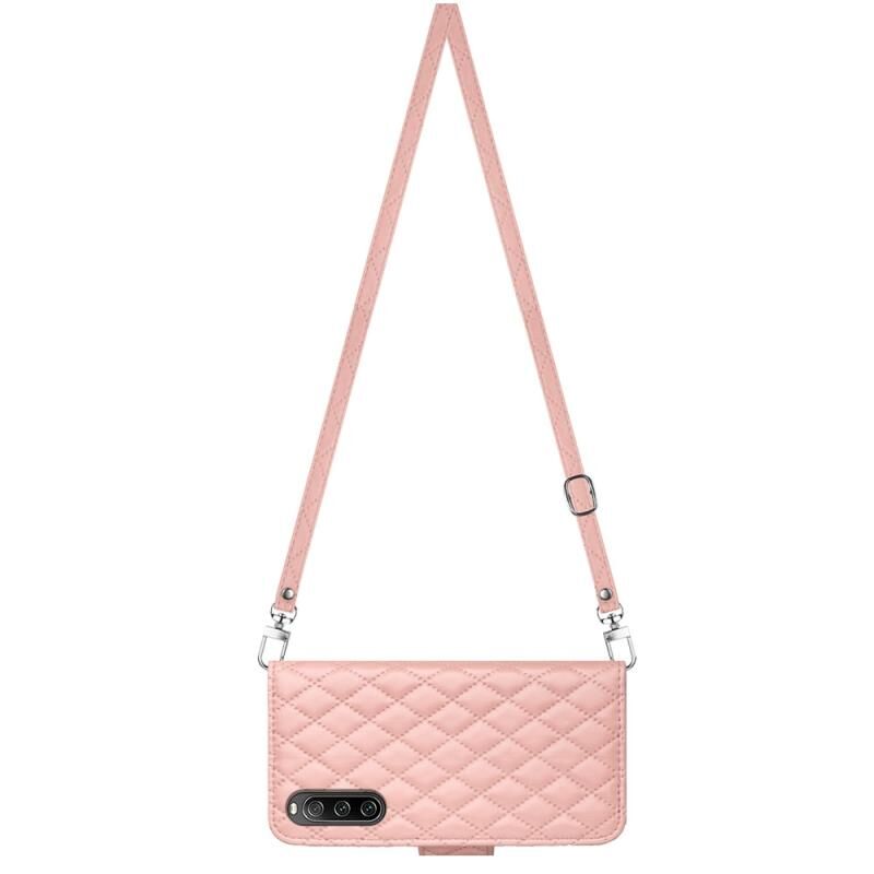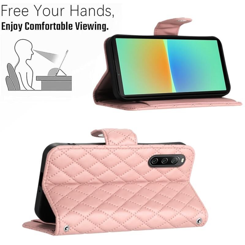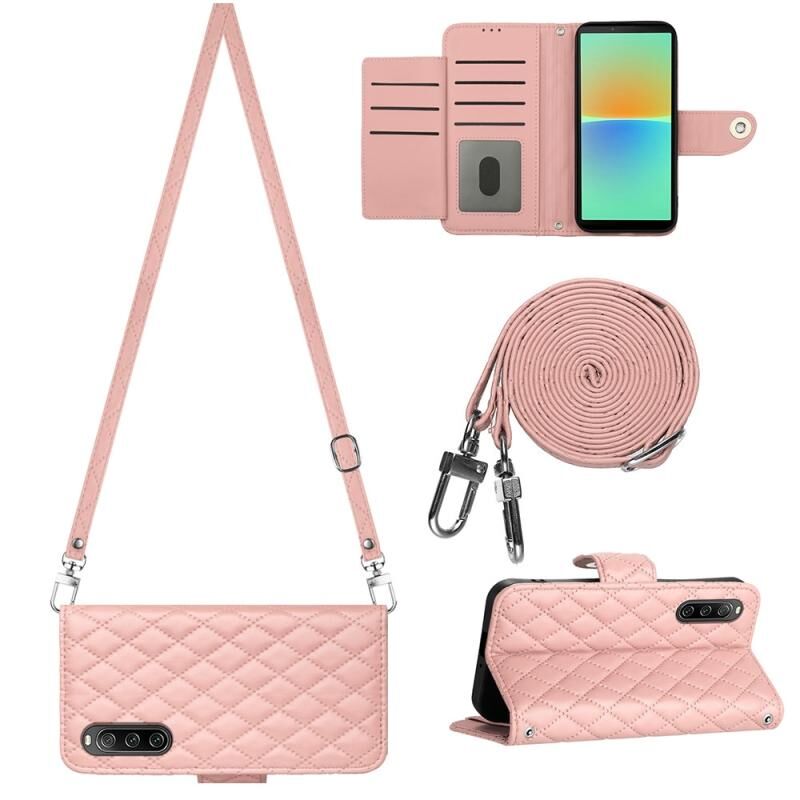 Για το Sony Xperia 10 IV Rhombic Texture Flip δερμάτινη θήκη τηλεφώνου με μακρύ κορδόνι (ροζ κοραλλί)