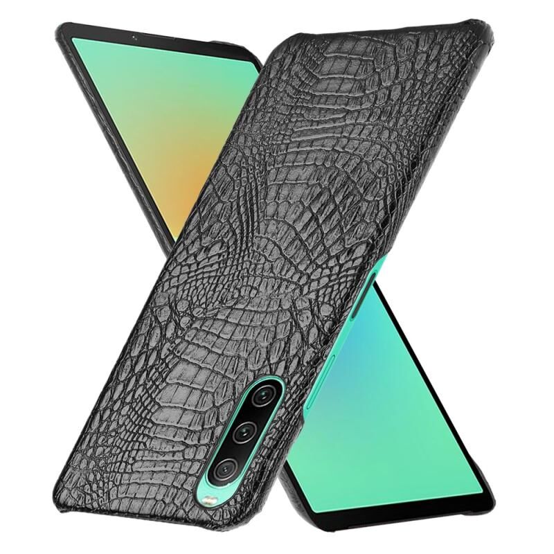 Θήκη για Sony Xperia 10 IV ανθεκτική στις κρούσεις, με υφή κροκόδειλου, από πολυανθρακικό (PC) + PU (Μαύρο)