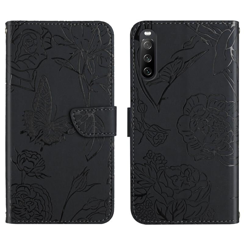 Θήκη τηλεφώνου από ανάγλυφο δέρμα για Sony Xperia 10 IV, με σχέδιο πεταλούδας και παιώνιας (Κόκκινο)