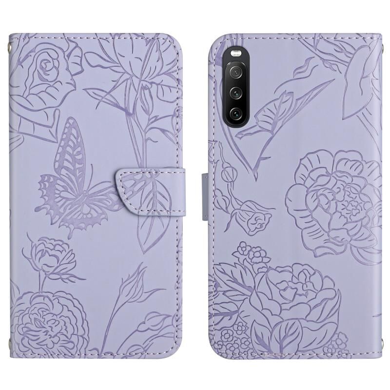 Θήκη τηλεφώνου από ανάγλυφο δέρμα για Sony Xperia 10 IV, με σχέδιο πεταλούδας και παιώνιας (Κόκκινο)