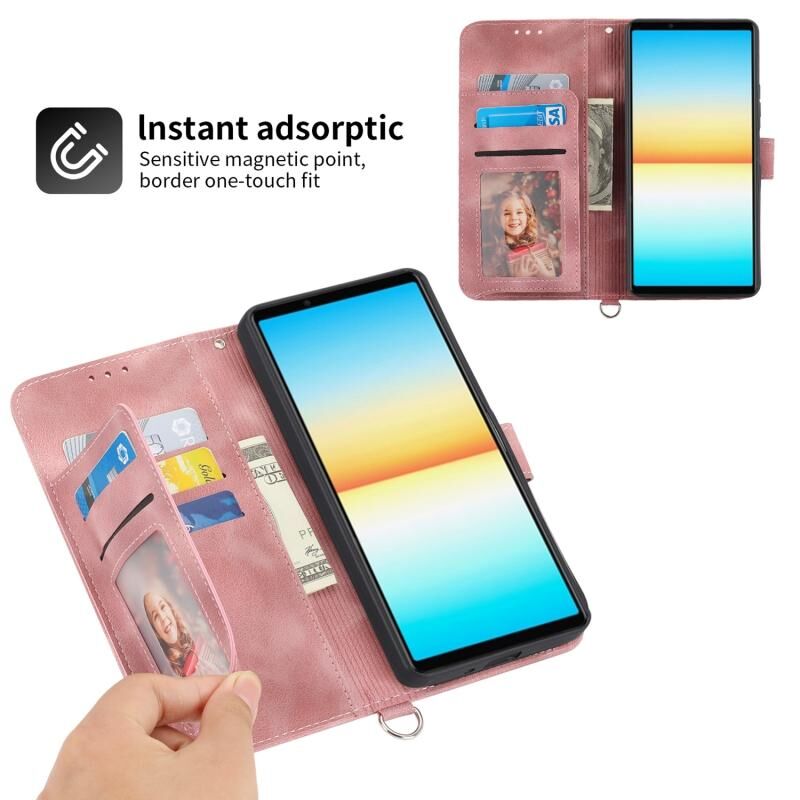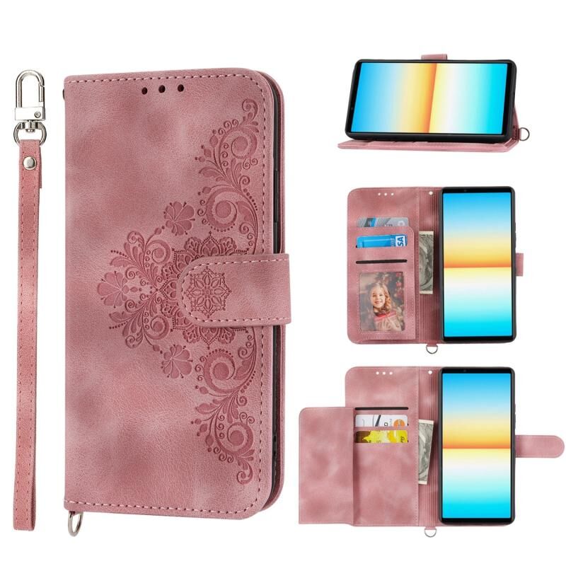 Για Sony Xperia 10 IV Skin-feel λουλούδια ανάγλυφο πορτοφόλι δερμάτινη θήκη τηλεφώνου (ροζ)