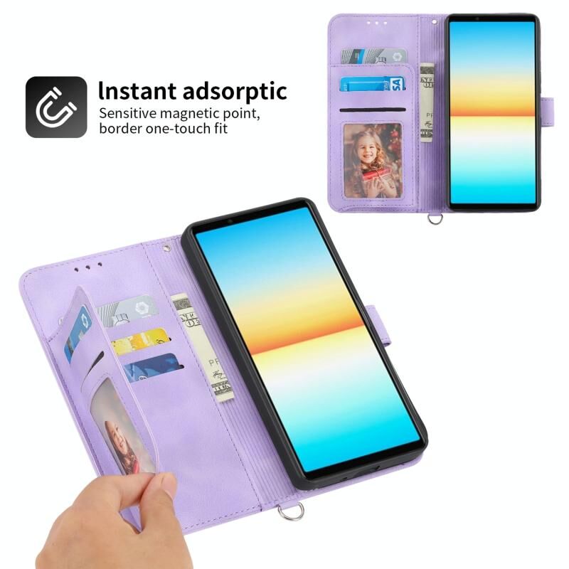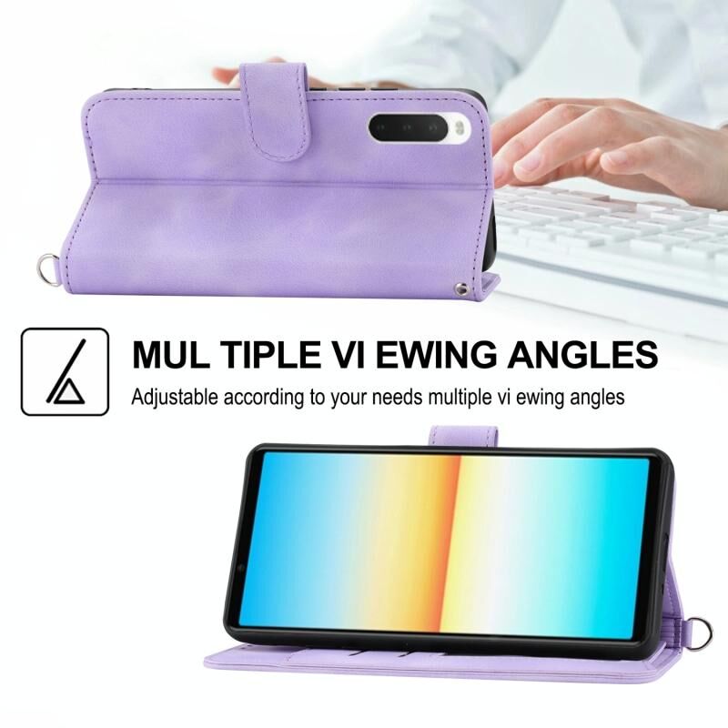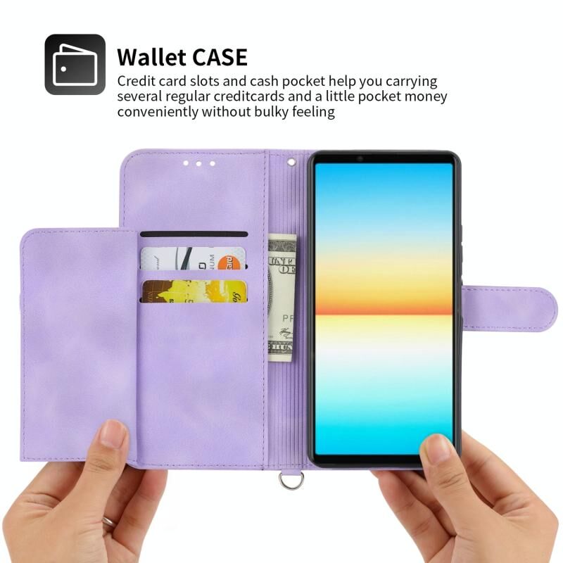Για Sony Xperia 10 IV Skin-feel λουλούδια ανάγλυφο πορτοφόλι δερμάτινη θήκη τηλεφώνου (μωβ)