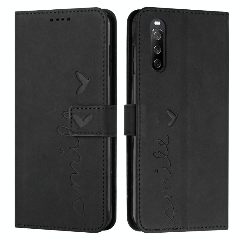 Θήκη τηλεφώνου από δέρμα με ανάγλυφο σχέδιο καρδιάς για Sony Xperia 10 IV, με κορδόνι (Καφέ)