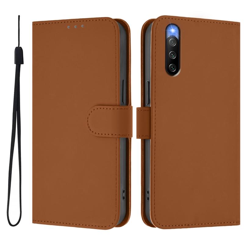 For Sony Xperia 10 IV Skin Feel Solid Color Leather Phone Case with Lanyard(Brown)
