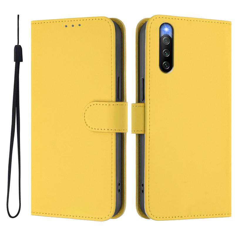 For Sony Xperia 10 IV Skin Feel Solid Color Leather Phone Case with Lanyard(Lemon Yellow)