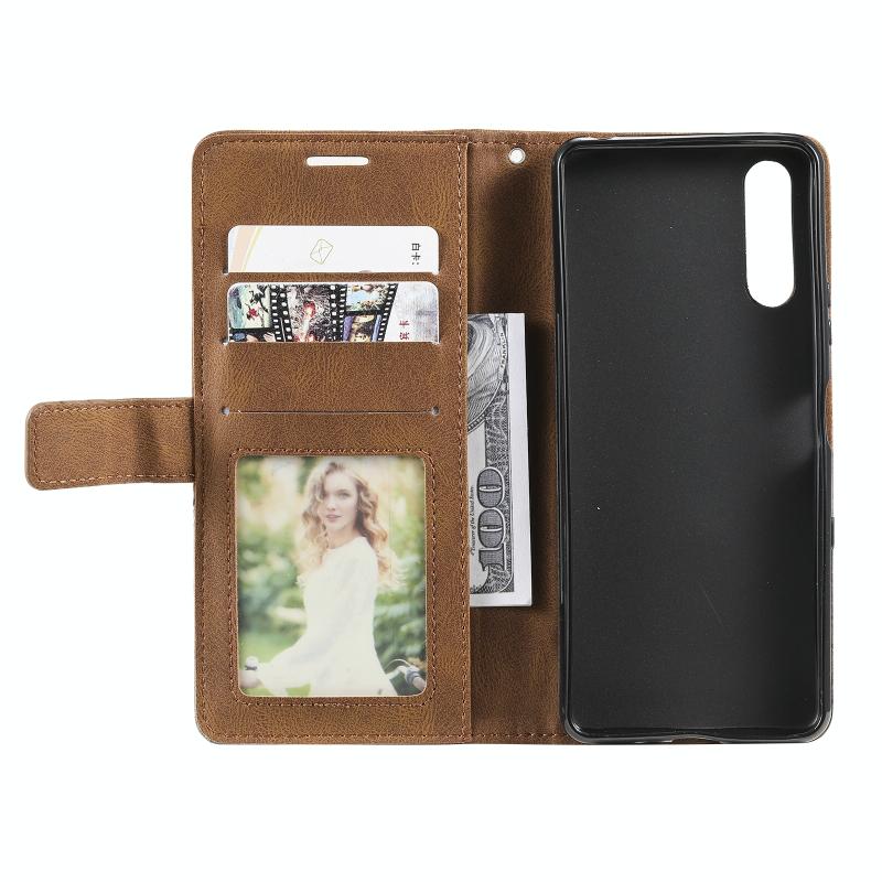 Θήκη τηλεφώνου από δέρμα με ραφές για Sony Xperia 10 IV (Καφέ)