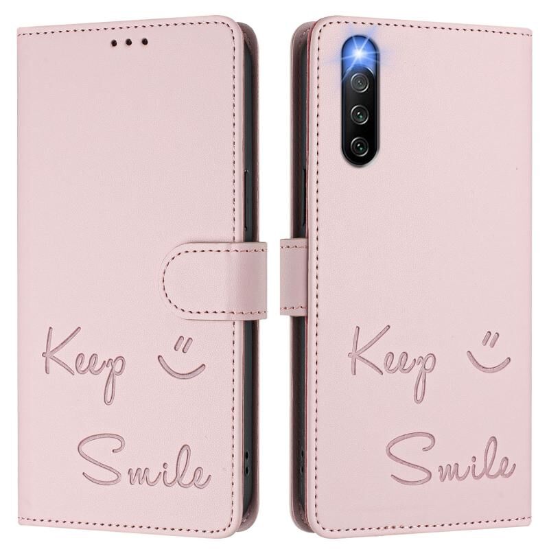 Για Sony Xperia 10 IV Smile ανάγλυφο RFID δερμάτινη θήκη τηλεφώνου (ροζ)