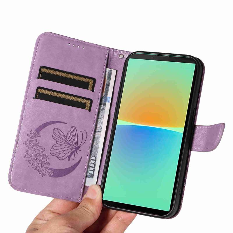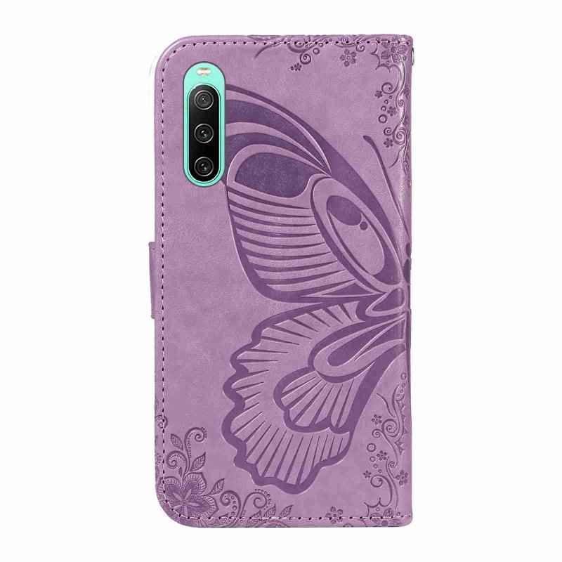 For Sony Xperia 10 IV Swallowtail Butterfly Embossed Leather Phone Case(Purple)