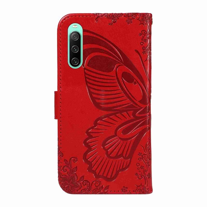 Θήκη τηλεφώνου από δέρμα με ανάγλυφο σχέδιο πεταλούδας Swallowtail για Sony Xperia 10 IV (Μπλε)