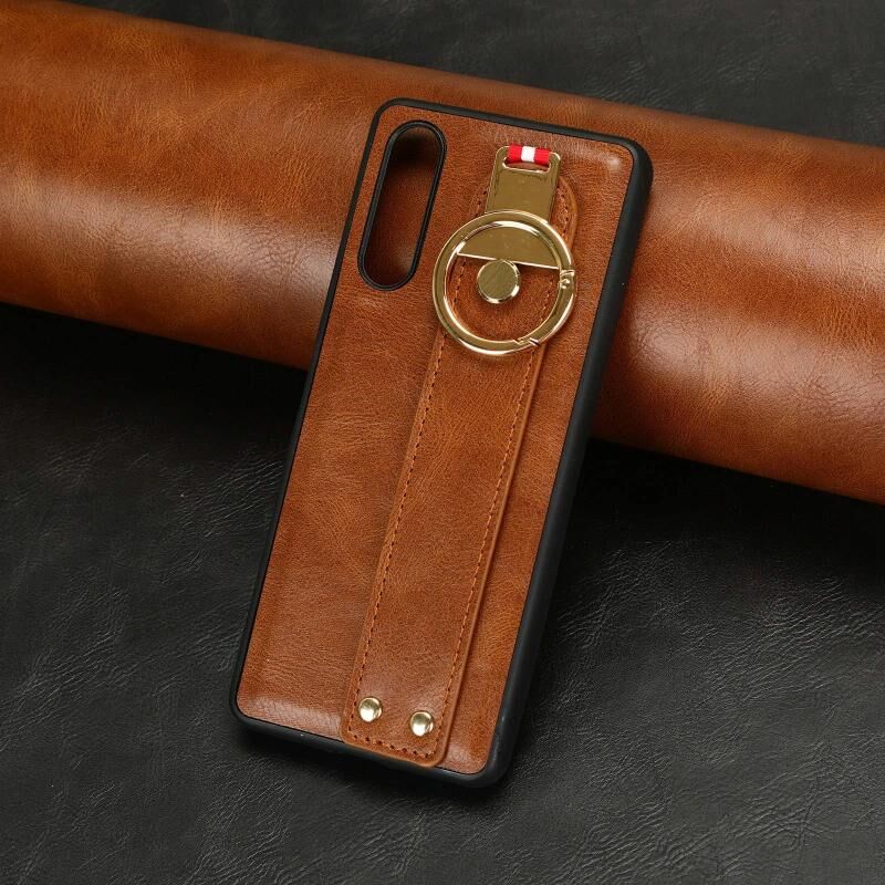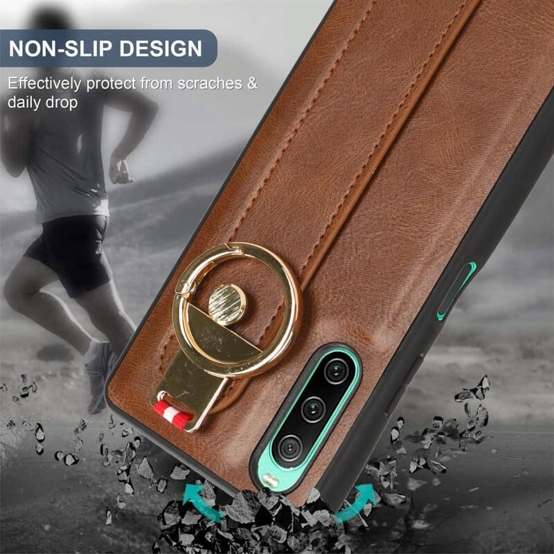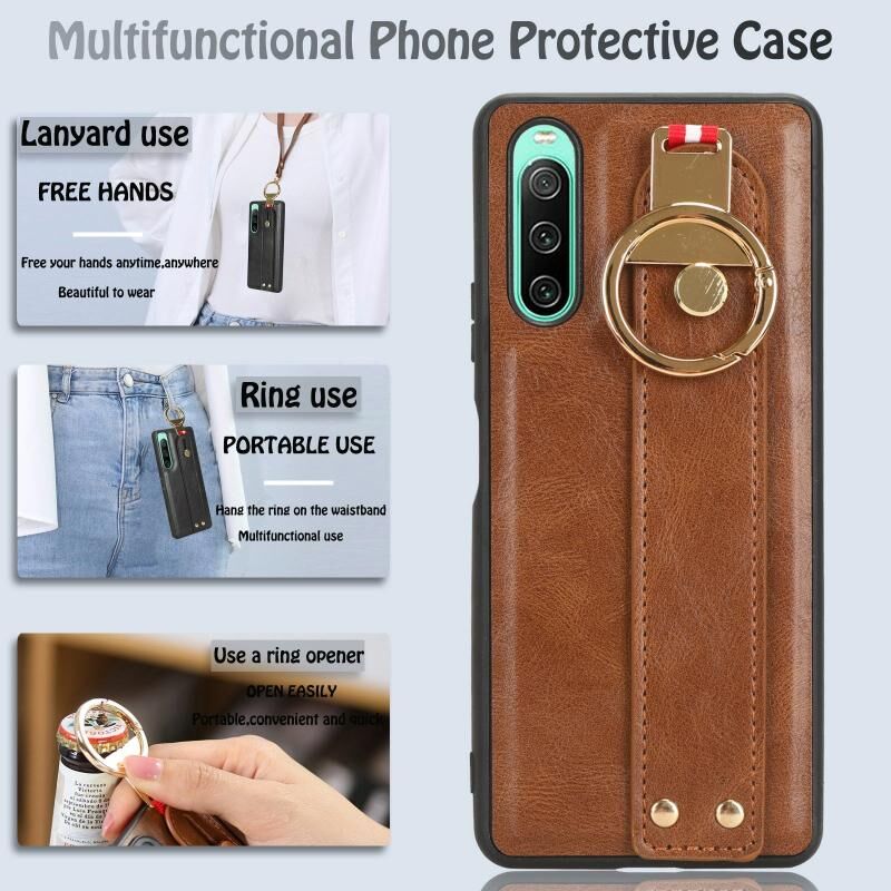 Για Sony Xperia 10 IV Wristband δέρμα πίσω υπόθεση τηλεφώνου (καφέ)
