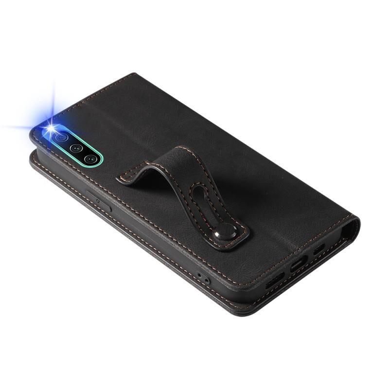 For Sony Xperia 10 IV Wristband Magnetic Leather Phone Case(Black)