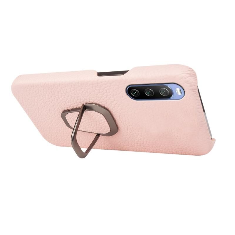 Θήκη τηλεφώνου από γνήσιο δέρμα με υφή λύτσι για Sony Xperia 10 lll με δακτύλιο συγκράτησης (Μαύρο)