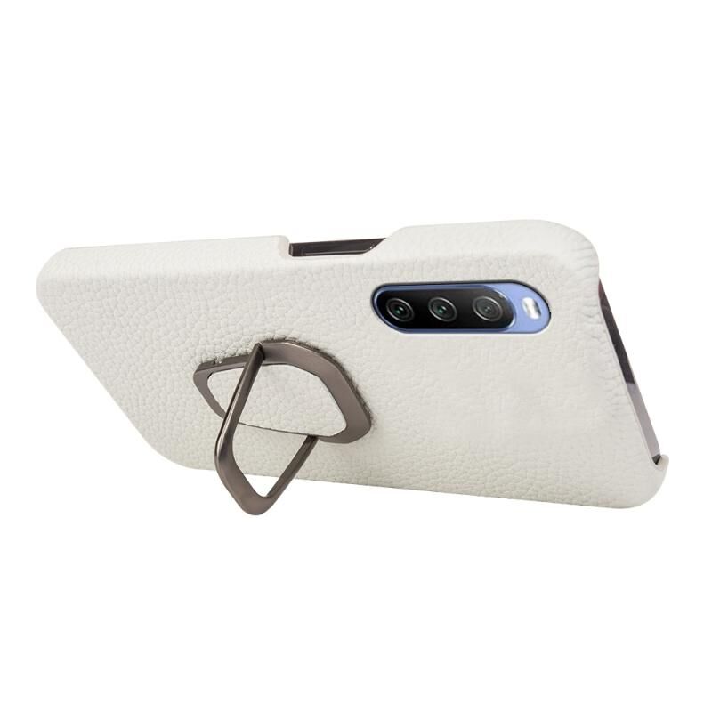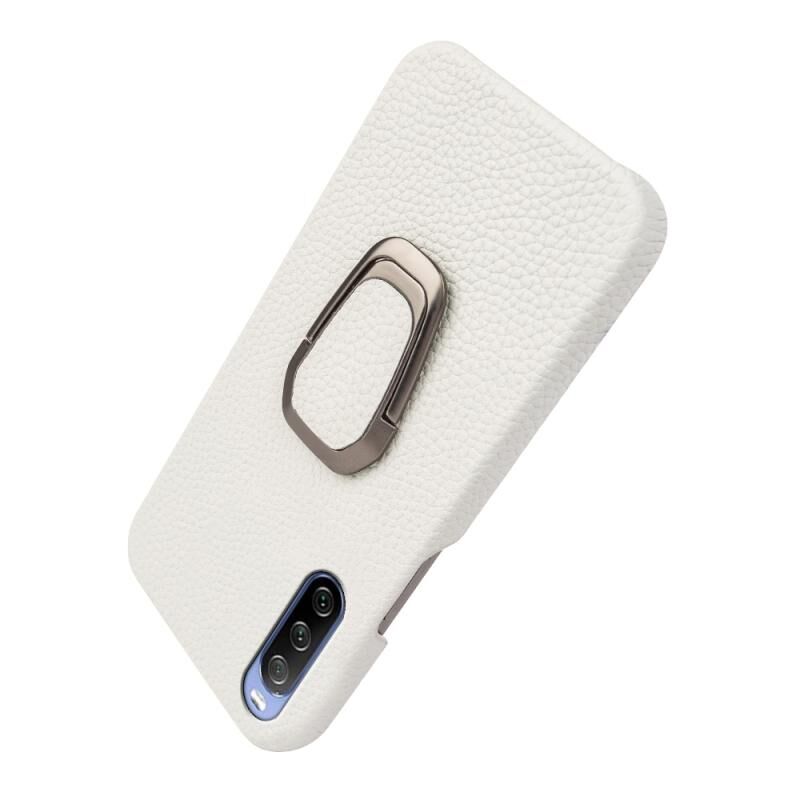 Θήκη τηλεφώνου από γνήσιο δέρμα με υφή λύτσι για Sony Xperia 10 lll με δακτύλιο συγκράτησης (Μαύρο)