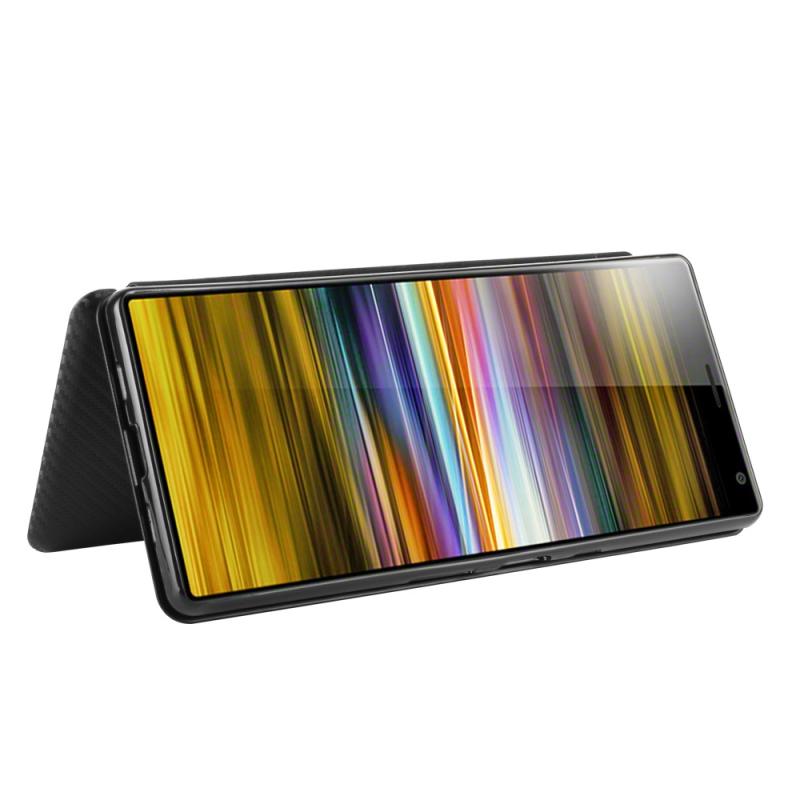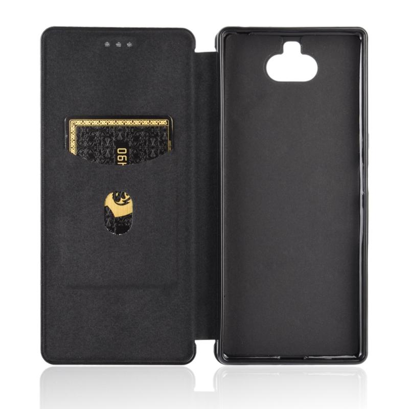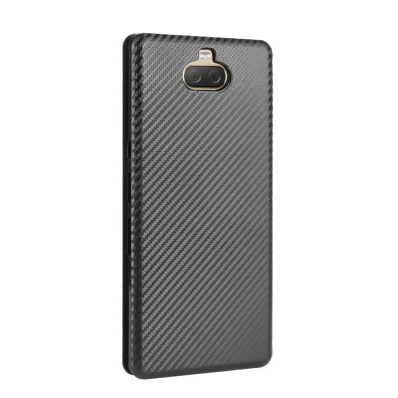 For Sony Xperia 10 Plus Carbon Fiber Texture Horizontal Flip TPU + PC + PU Leather Case with Card Slot(Black)