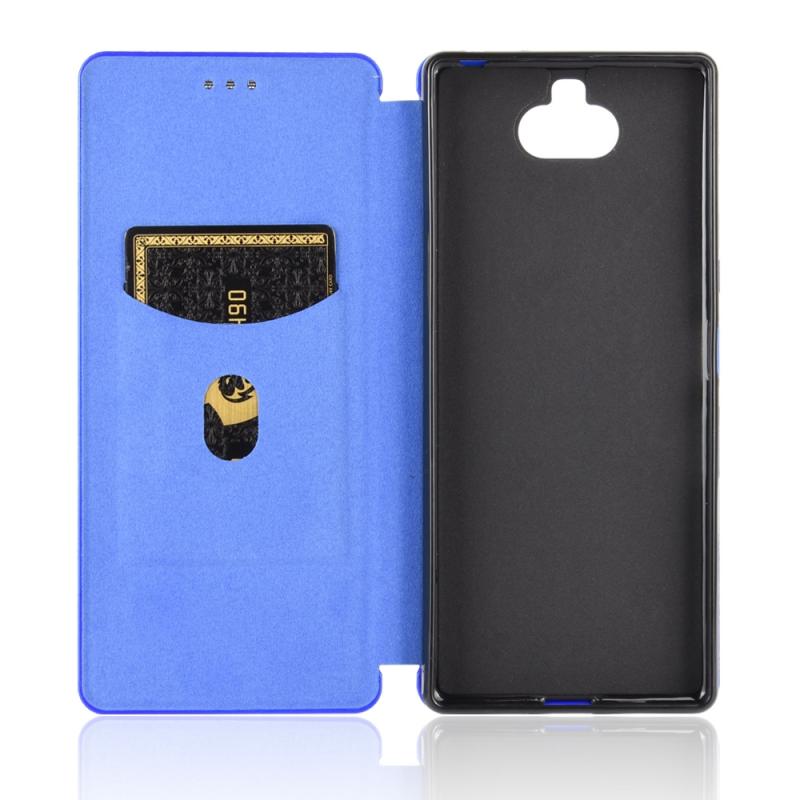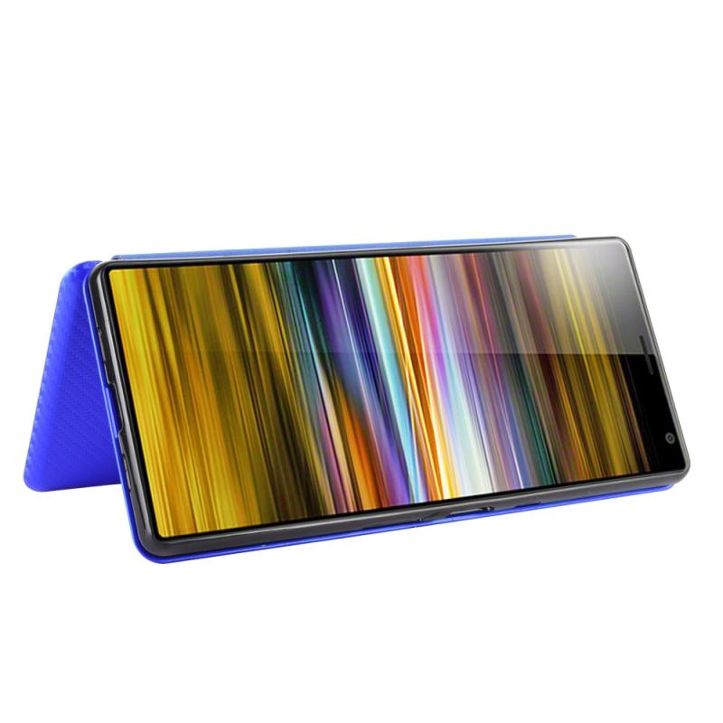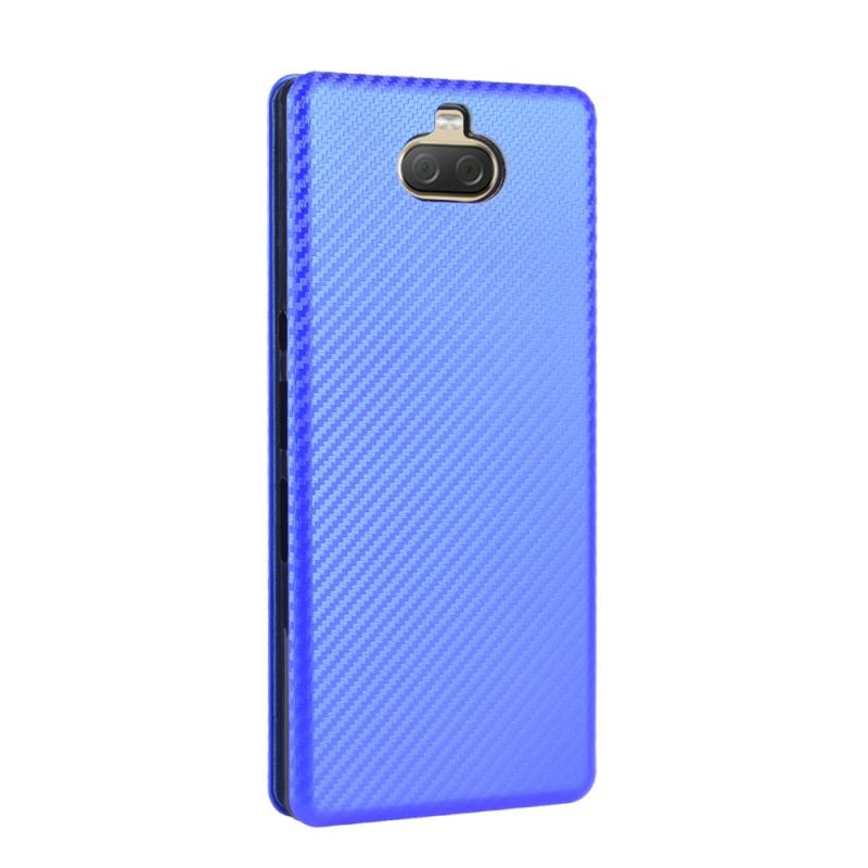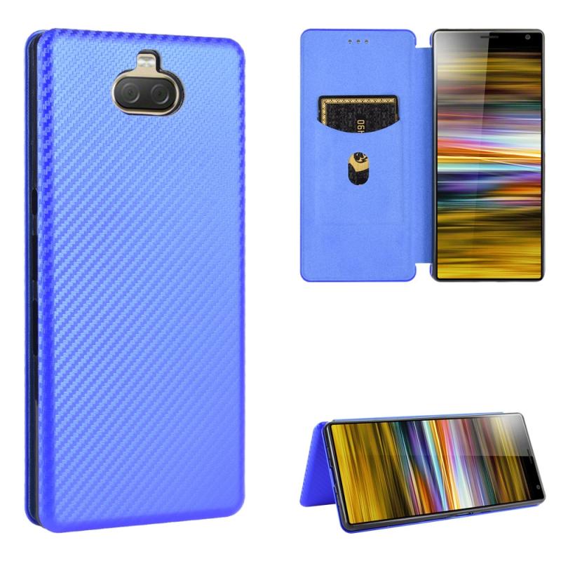 For Sony Xperia 10 Plus Carbon Fiber Texture Horizontal Flip TPU + PC + PU Leather Case with Card Slot(Blue)
