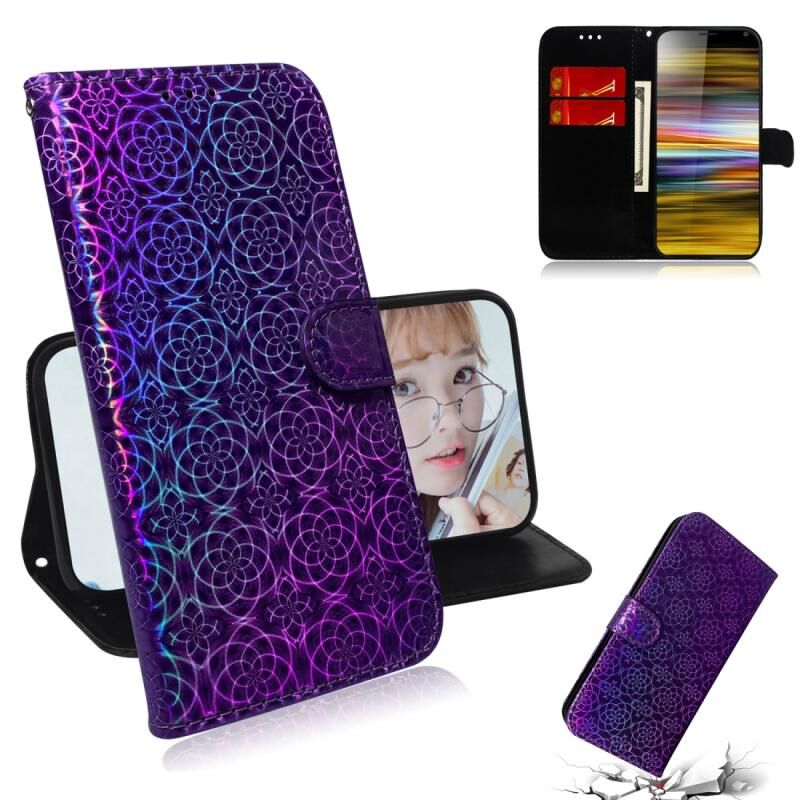 For Sony Xperia 10 Plus Solid Color Colorful Magnetic Buckle Horizontal Flip PU Leather Case with Holder & Card Slots & Wallet & Lanyard(Purple)