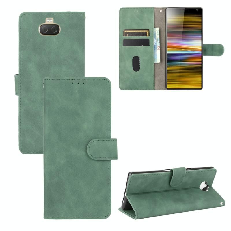 Για το Sony Xperia 10 Plus Αμιγές χρώμα δέρμα αίσθηση μαγνητική πόρπη οριζόντια Flip μοσχάρι υφή PU δέρμα υπόθεση με κάτοχο & υποδοχές καρτών & πορτοφόλι (πράσινο)
