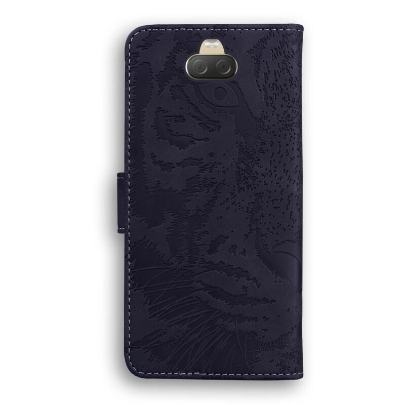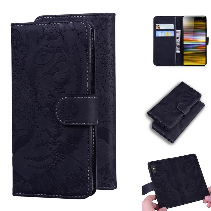 Θήκη δέρματος οριζόντιας αναδίπλωσης με ανάγλυφο μοτίβο τίγρης για Sony Xperia 10 Plus με βάση & υποδοχές καρτών & πορτοφόλι (Μαύρο)