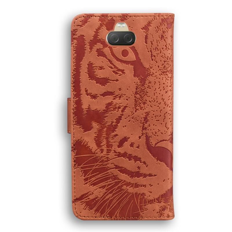 Θήκη δέρματος οριζόντιας αναδίπλωσης με ανάγλυφο μοτίβο τίγρης για Sony Xperia 10 Plus με βάση & υποδοχές καρτών & πορτοφόλι (Μαύρο)
