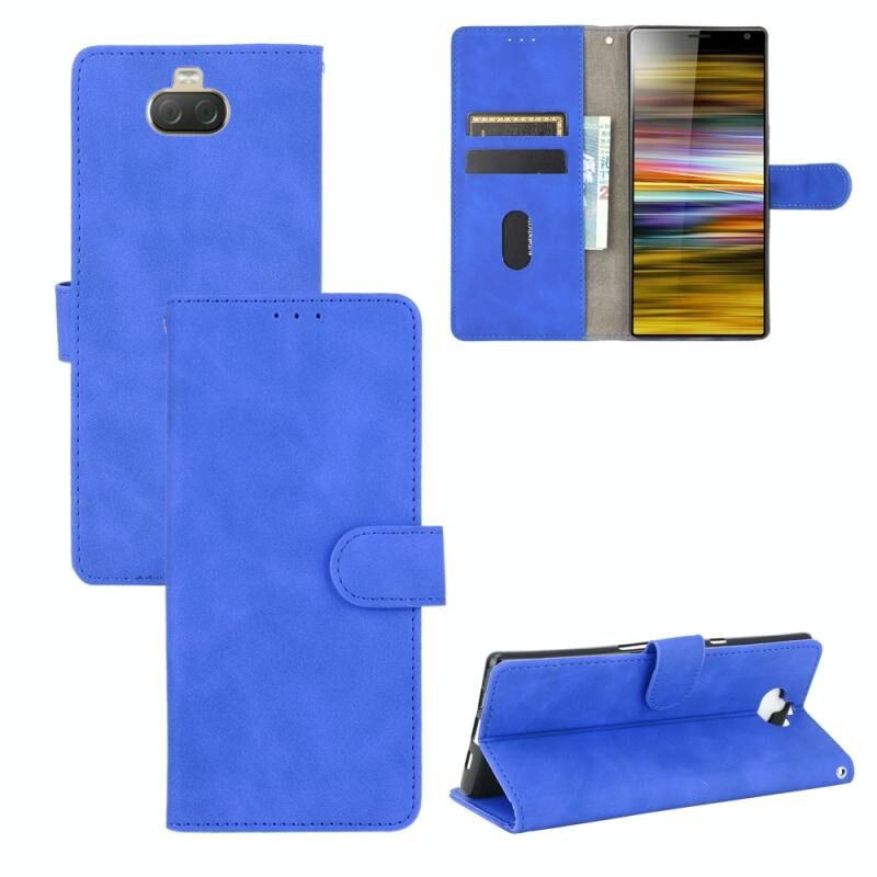 Για το Sony Xperia 10 Solid Color Skin Feel Magnetic Buckle Horizontal Flip Calf Texture PU Leather Case with Holder & Card Slots & Wallet(Blue)