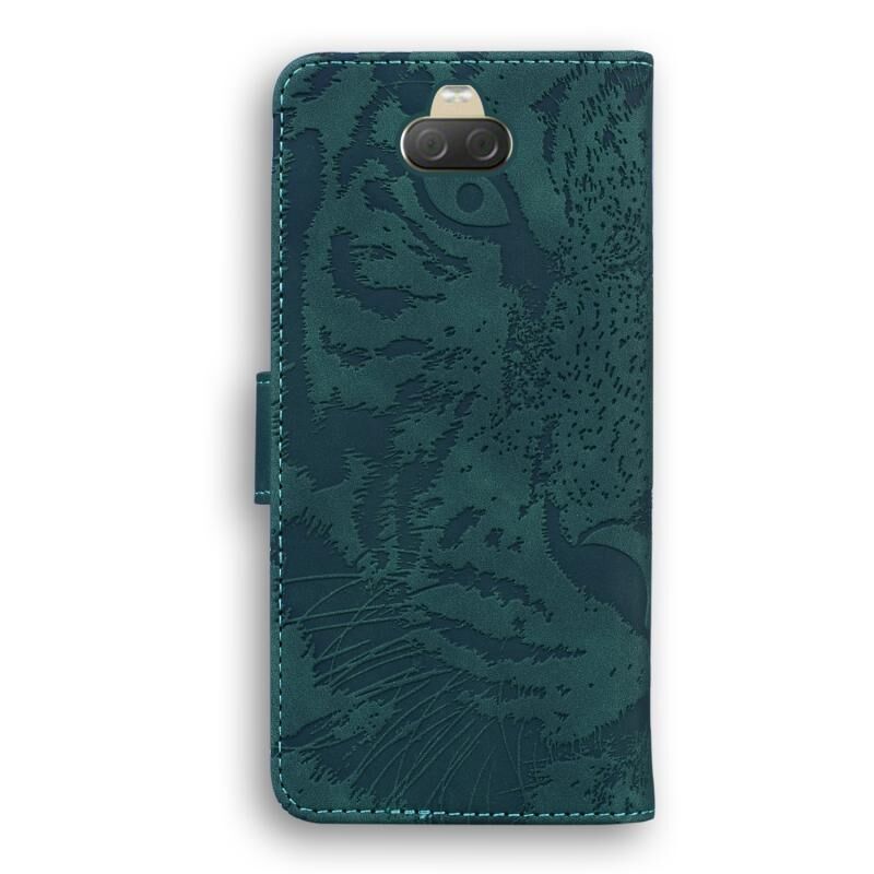 Θήκη δέρματος οριζόντιας αναδίπλωσης με ανάγλυφο μοτίβο τίγρης για Sony Xperia 10 με βάση & υποδοχές καρτών & πορτοφόλι (Κόκκινο)