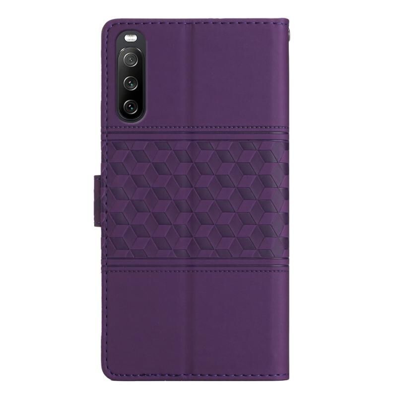 Για Sony Xperia 10 V 2023 Diamond ανάγλυφο δέρμα αίσθηση δέρμα τηλέφωνο υπόθεση με κορδόνι (μωβ)