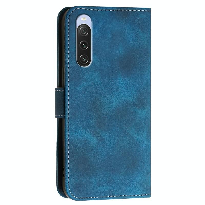 Θήκη τηλεφώνου τύπου flip από δέρμα με ανάγλυφο σχέδιο πλέγματος και πεταλούδας για Sony Xperia 10 V 2023 με κορδόνι (Σκούρο Μπλε)