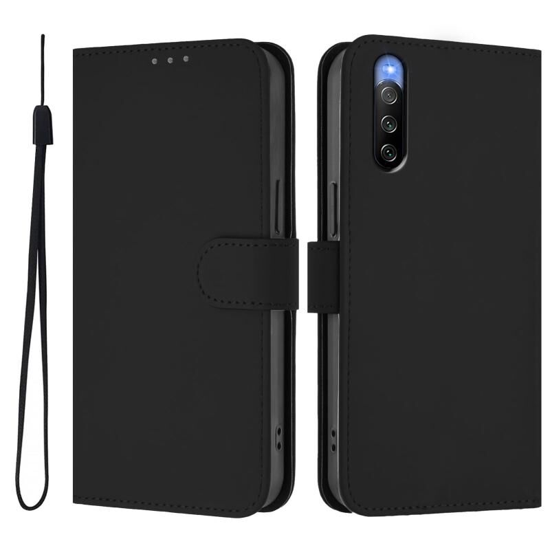 For Sony Xperia 10 V 2023 Skin Feel Solid Color Leather Phone Case with Lanyard(Black)